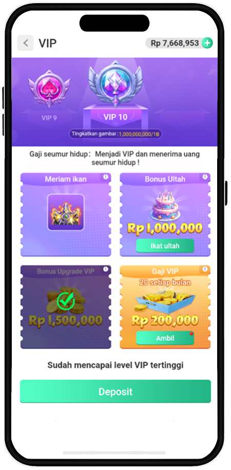💥Note: If you finish the first VIP upgrade ( from VIP0 TO VIP1 ),then you can also get Rp10,000 extra reward !